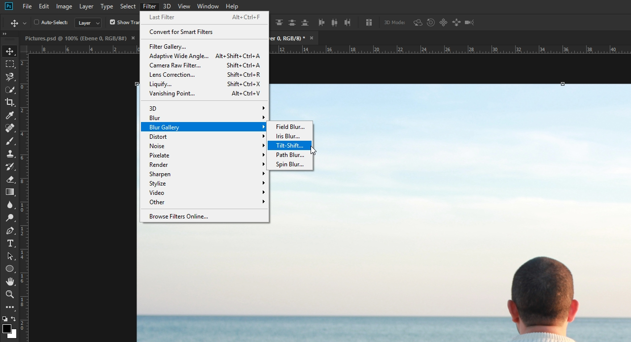 Andra filter, som det så kallade Tilt-Shift-filtret eller Iris-blur, gör att du kan fokusera bilden på ett visst område. Men dessa filter definierar redan vissa former och urtag i områden som ska vara suddiga. Vanligtvis är dessa därför mer lämpliga för likformiga former. Du hittar filtret i Photoshop under menypunkten Filter i Blur gallery.