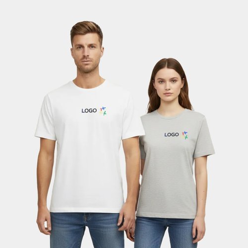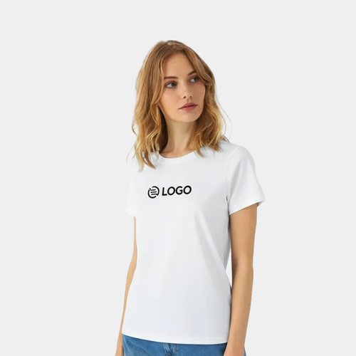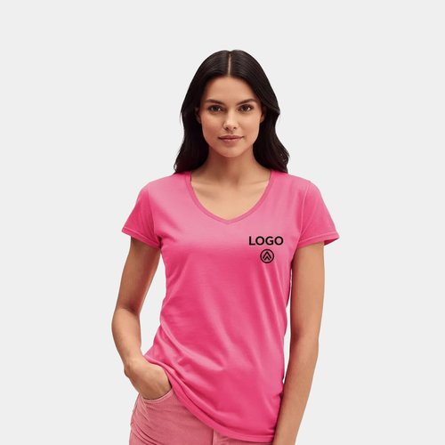 Utrusta dina anställda med högkvalitativa tryckta T-shirts för evenemang, mässor eller marknadsföring. Därmed ökar du känslan av samhörighet i teamet. Dessutom kan T-shirts fungera som en identifieringssymbol. Samtidigt har du en individuell gåva till kunder eller partners nära till hands. Förutom T-shirts för barn och män har vi också T-shirts för damer - speciellt med midjeband eller feminint snitt. Om du vill trycka en T-shirt för damer, kan du designa olika mönster för fram- och baksida. Låt trycka en rolig reklamfras på ena sidan och förse den andra med din reklam. Anvisning: Vid utformning, uppmärksamma utskärningen på T-shirten och placera motiven därefter. Om du vill trycka en T-shirt för damer, bör du tänka på färgerna redan innan design av motivet. Hos oss kan du välja mellan olika färger på plagget och får välja max. två tryckfärger.