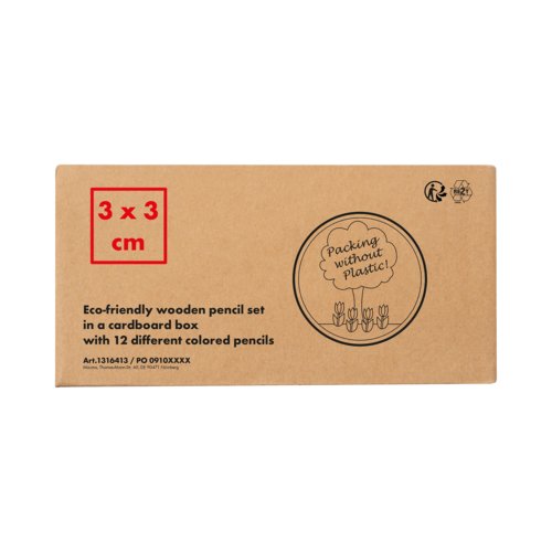 - Miljövänligt set färgpennor av trä i pappförpackning med 12 olikfärgade pennor
