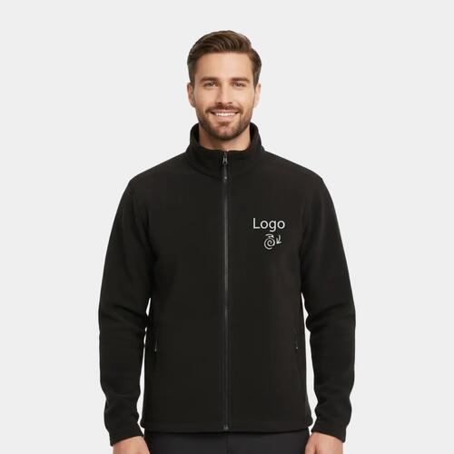 Svart fleecejacka för män med full dragkedja och sidfickor.