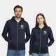 Marinblå unisex sweatshirtjacka i ekologisk bomull och återvunnen polyester med huva.