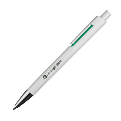 - Kulspetspennor med vitt skaft, färgade applikationer och extravaganta clips