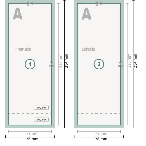 - Dataformat (inkl. 2 mm beskärning): 7,6 x 21,4 cm
