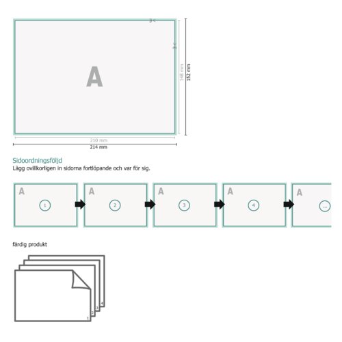 Tryckdataanvisningar Lösbladssystem, A5, 21 x 14,8 cm, liggande format, Tryckt med fyrfärgstryck på en sida (4/0)