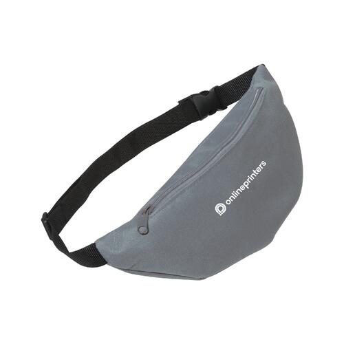 Grå bältesväska med dragkedja och justerbart band.
