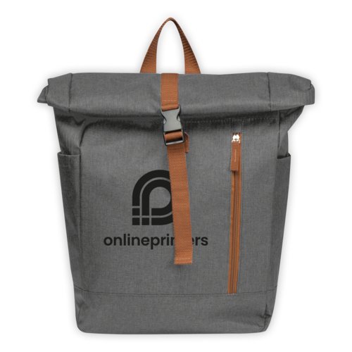 - Ryggsäck av 500D polyester med vikbar eller rullbar förslutning, vadderade axelband och rygg, säkerhetsfack med karbinhake på baksidan, två sidofickor på utsidan, en ficka på insidan, bärrem och stängbar frontficka