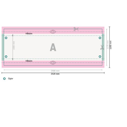 Tryckdataanvisningar Ställningsbanderoll, 250 x 100 cm