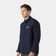 Blå softshelljacka för män med dragkedja och sidfickor.
