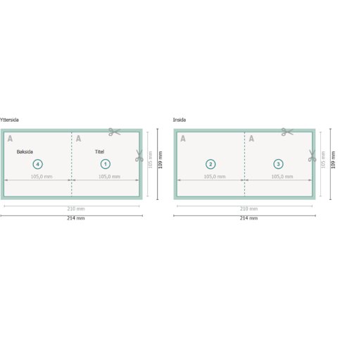 - Skapa inte tryckfiler för foldrar som enkelsidor, utan som färdigmonterade inner- och yttersidor - se datablad