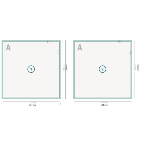 - Dataformat (inkl. 2 mm beskärning): 12,4 x 12,4 cm